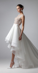 Αν είστε από τις τυχερές και τα πόδια σας είναι το δυνατό σας σημείο τολμήστε το!Δώστε ένταση στο πάνω μέρος του νυφικού , επιλέγοντας ιδιαίτερα υφάσματα , σχέδια, δαντέλες, έντονα κοψίματα στους ώμους, ακόμα και στοιχεία με λάμψη όπως στρας..Τα πόδια σας θα είναι και το σημείο αναφοράς .Επομένως καλύψτε την πλάτη και το μπούστο σας,αφήνοντας απλή τη φούστα. Δε χρειάζεται να υπερβάλλετε με το ύψος..Λίγοι πόντοι πάνω από το γόνατο, είναι αρκετοί για να είστε όμορφες και λαμπερές αλλά ταυτόχρονα υπέρκομψες.